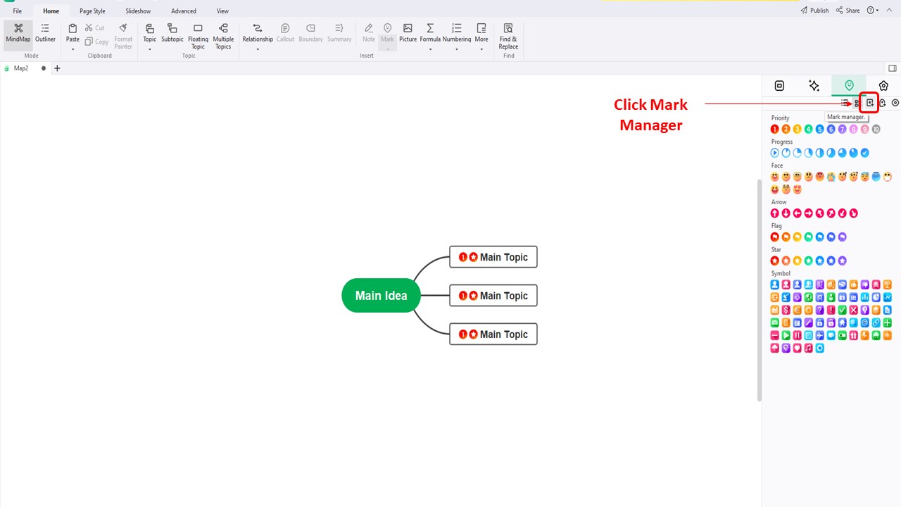 Inserting a mark or icon into a topic or an entire mind map is easy, and here's how to do it.